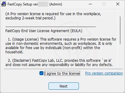 第一個畫面會看到使用者授權協議,勾選 I agree to the license 並按 Next。