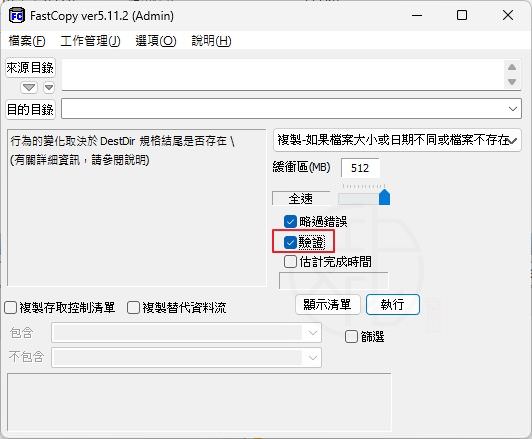 FastCopy 的「驗證」可以確認複製後的檔案與來源是否完全一致,非常適合備份重要資料: