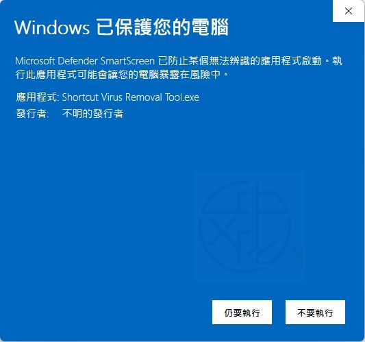 需注意的是,Shortcut Virus Removal Tool 在 VirusTotal 平台上確實會觸發偵測,您的防毒軟體也可能發出警示,指出該檔案並非常用下載檔案。還有「切記」隨身碟中如果有重要檔案「一定」要先做備份免得被程式誤刪。不事先作備份而遭軟體刪除而無法救回一概與本人和作者無關。